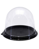 Пластиковая упаковка для пирожного, капкейка или кекса. Диаметр дна 90 мм, высота купола 80 мм. Купол прозрачный, дно черное.